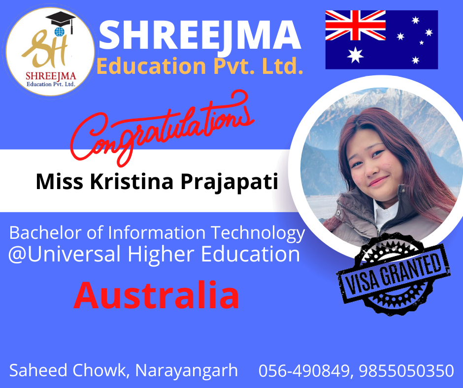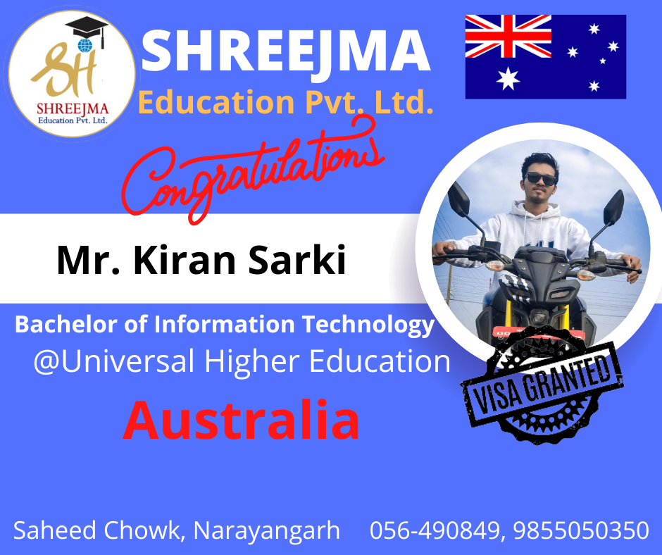 Shreejma Education was instrumental in my journey to Australia for higher education, offering comprehensive support from exam preparation to visa application. Thanks to their guidance, I smoothly adapted to life in Australia and highly recommend them to aspiring international students.