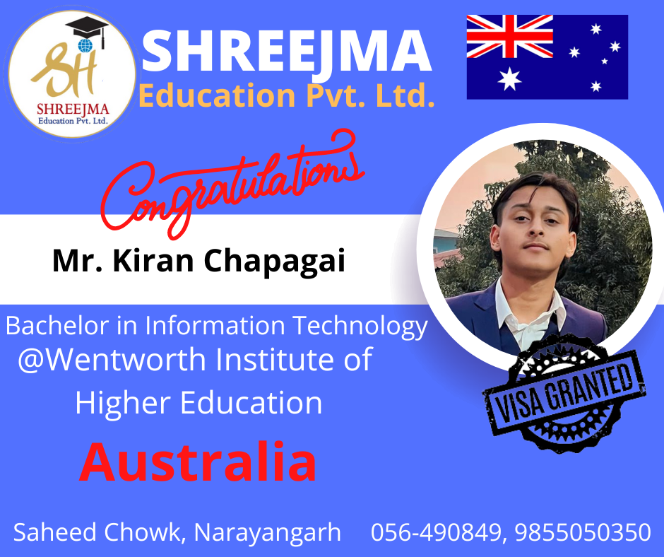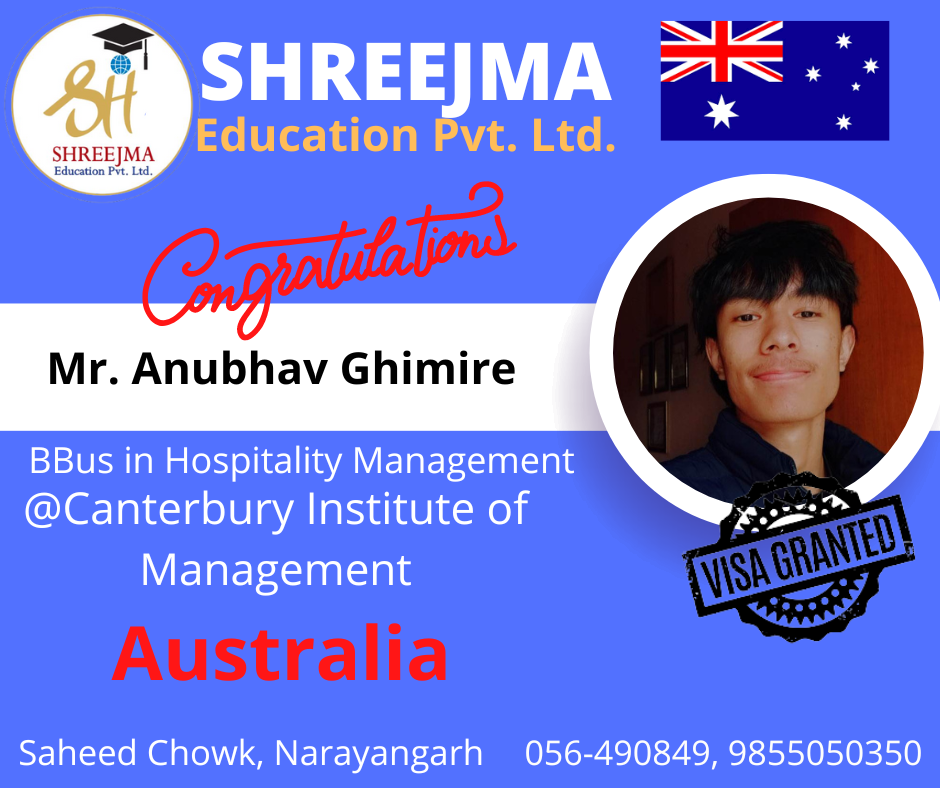 Shreejma Education was instrumental in my journey to Australia for higher education, offering comprehensive support from exam preparation to visa application. Thanks to their guidance, I smoothly adapted to life in Australia and highly recommend them to aspiring international students.
